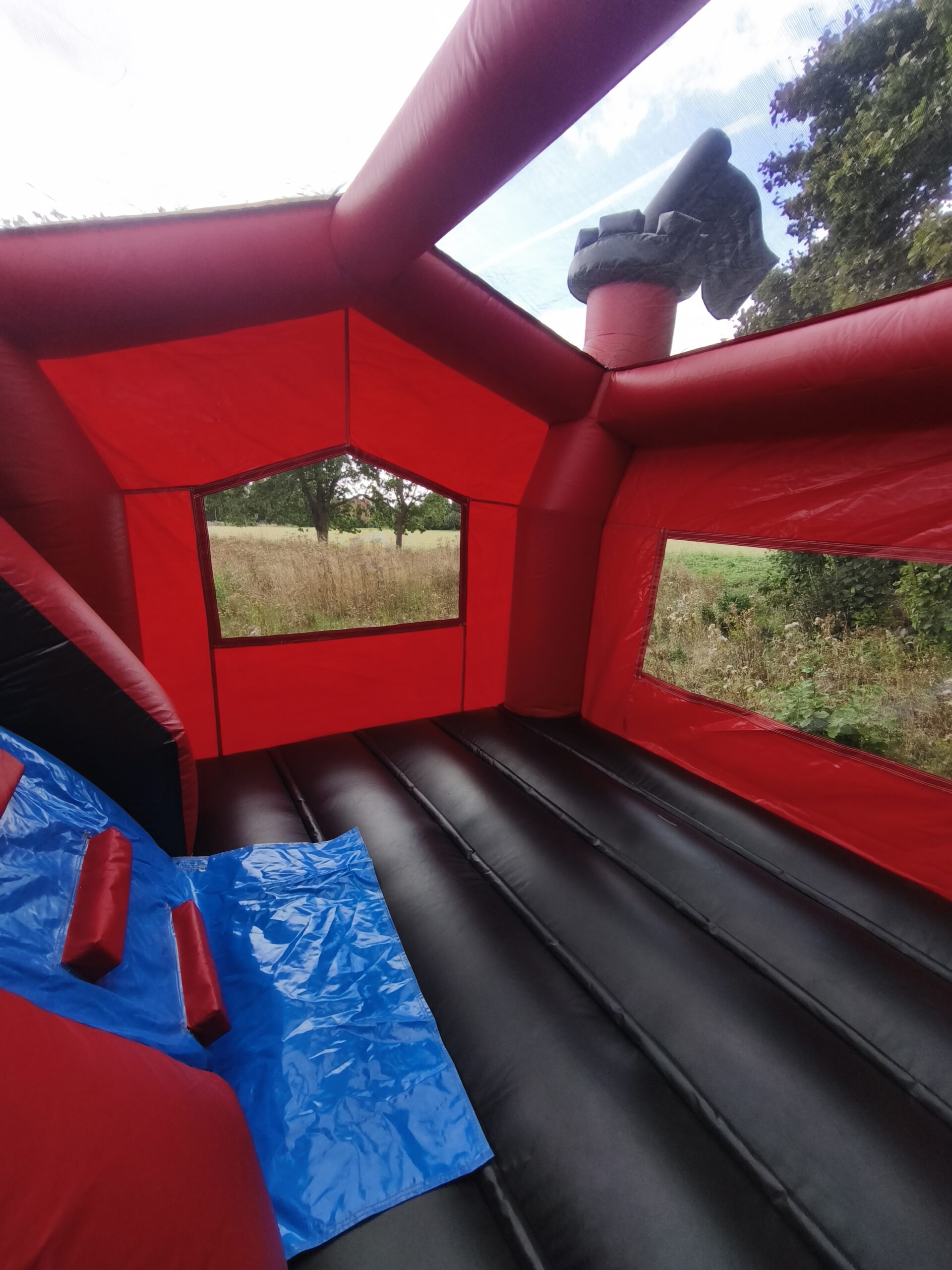 Für den Transport der Hüpfburg wird ein Bulli oder Anhänger benötigt – sie passt nicht in ein Auto.